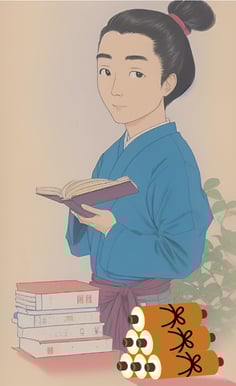 この先生は、たいへんに勉強が好きで、たくさんの本を持っており、村の人達は先生の家にうず高くつまれた本をみて、