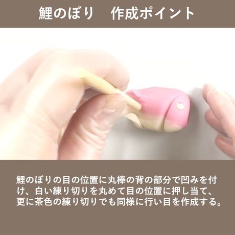 布巾を使って色の境目をやわらかく包み込み、尾びれ部分をねじって表現。